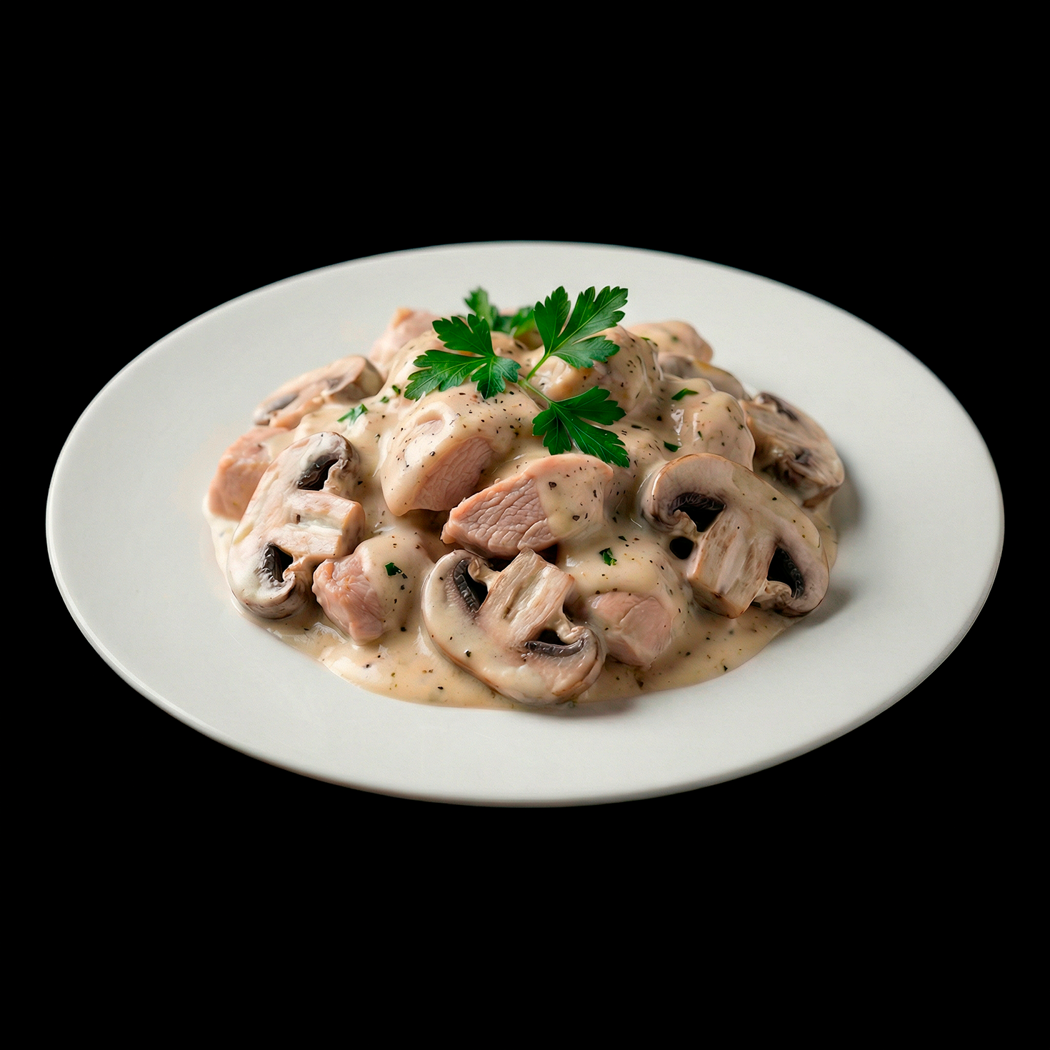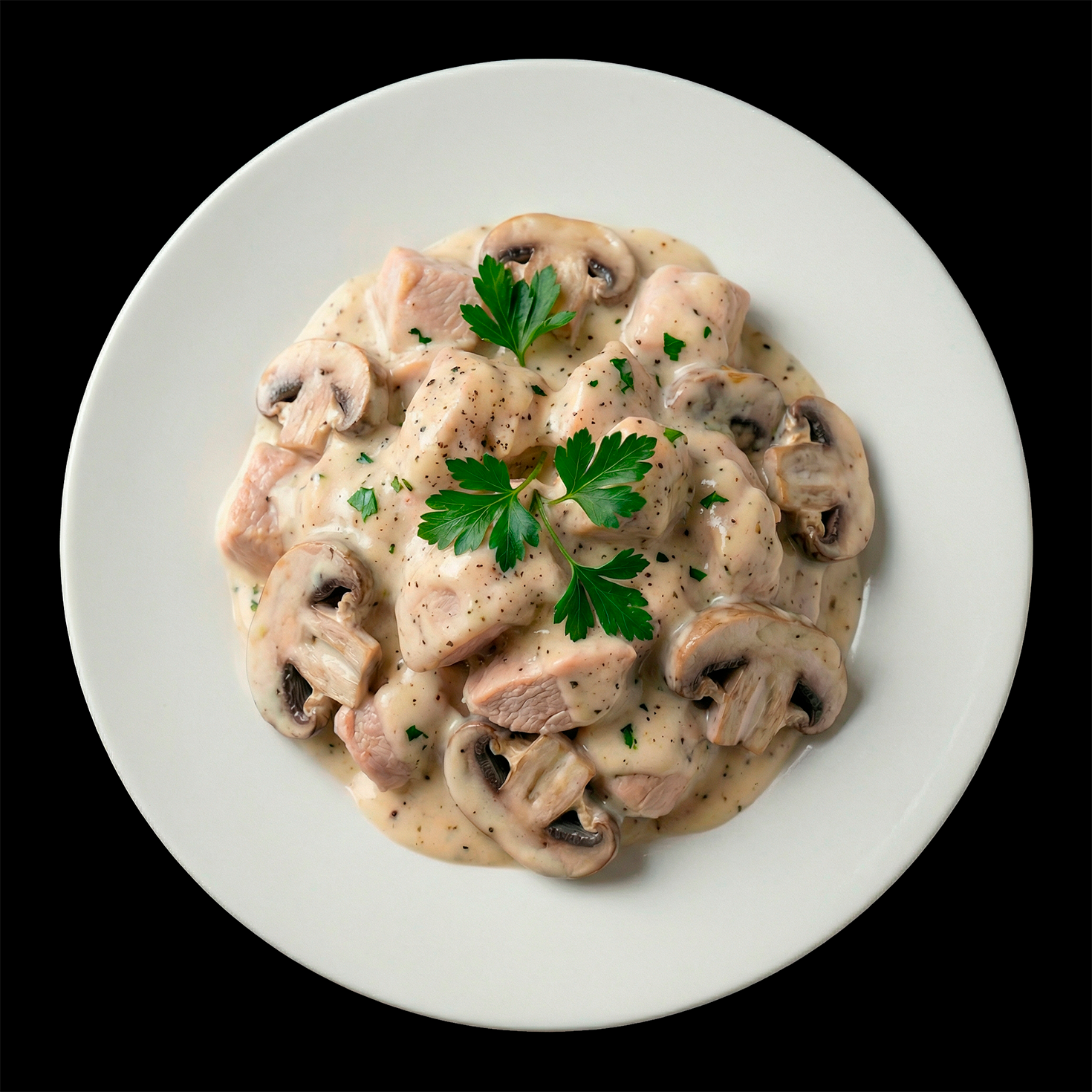 Нежнейшие кусочки куриного филе и ароматные шампиньоны, томленные в шелковистом сливочном соусе с майонезом и пряностями – это классическое французское фрикасе в лучших традициях! Каждый ломтик мяса буквально тает во рту, а грибы добавляют глубину вкуса и аромат леса этому изысканному блюду. Подается горячим с гарниром из риса, пасты или картофеля – идеальный выбор для тех, кто ценит утонченность и домашний уют!