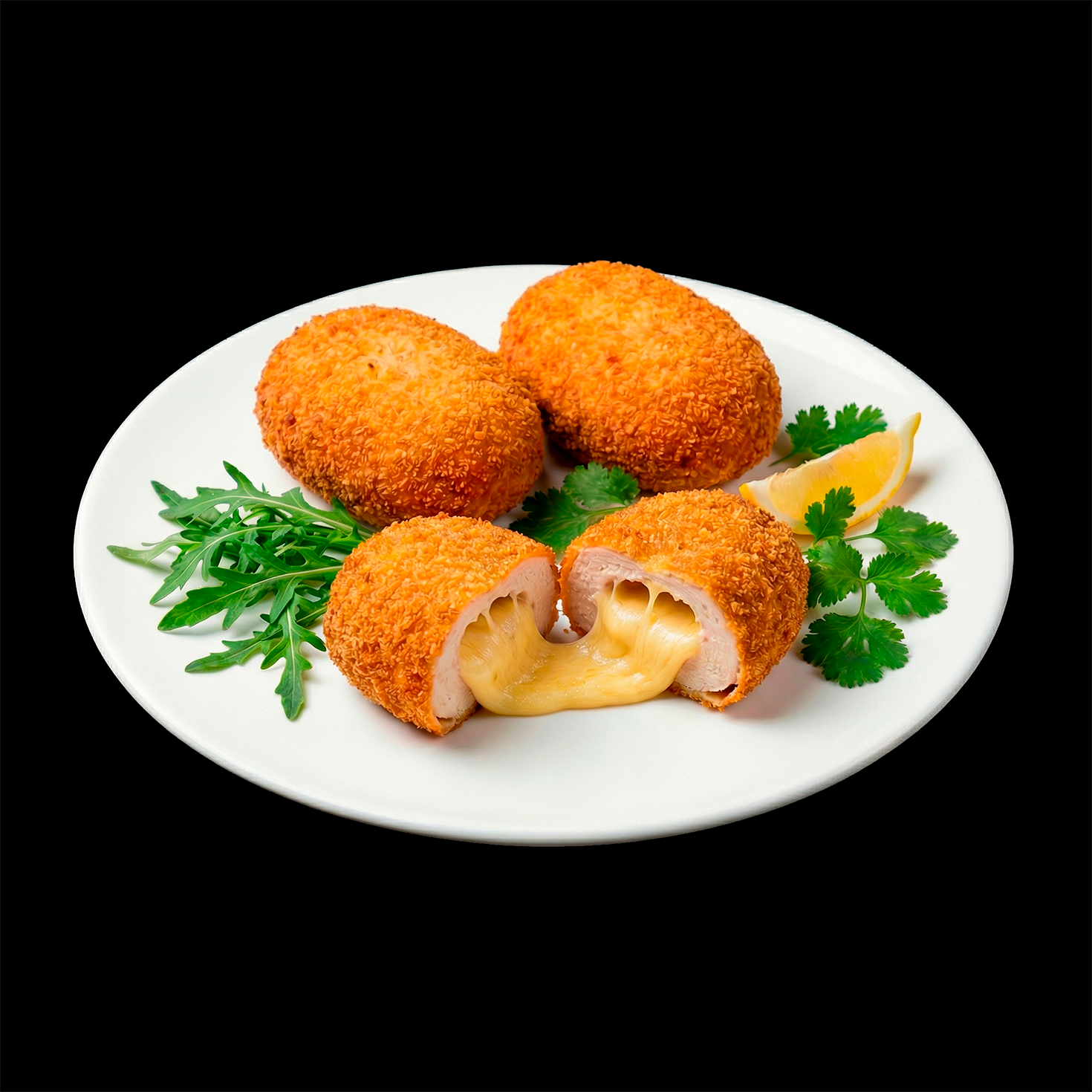 Снаружи — румяная корочка, которая хрустит так громко, что соседи завидуют, а внутри — нежнейшее куриное филе с сюрпризом! Коварный расплавленный сыр ждёт своего часа, чтобы вырваться наружу тягучим золотистым потоком прямо вам в рот. Это не просто котлета — это кулинарный джекпот для всех, кто верит в любовь с первого укуса! 🐔🧀🔥